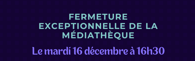 La médiathèque fermera exceptionnellement le mardi 16 décembre à 16h30.