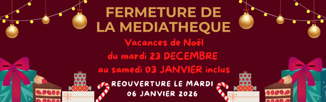 La médiathèque sera fermée du mardi 23/12/2025 au samedi 3/01/2026 inclus. Réouverture le mardi 6/01/2026.